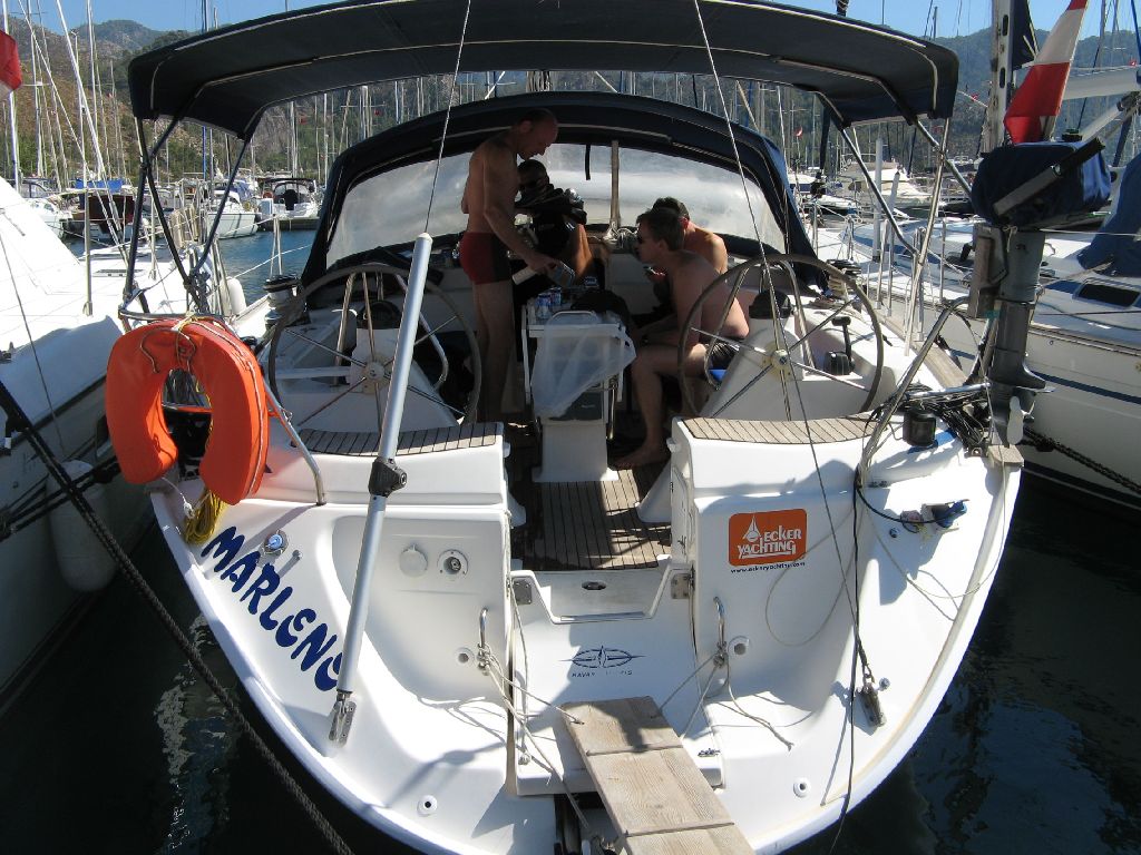 Übernahme dauert noch etwas, daher Mittagspause mit Imbiss am Hafen, ab 15 Uhr Einladen der mit gebrachten und zugekauften Verpflegung sowie der persönliche Ausrüstung.